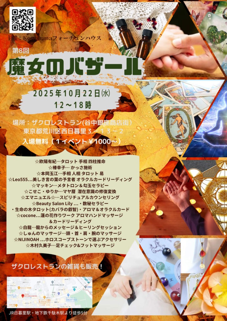 秋の気配が深まる10月、日常を少し離れて、心と体の声に耳を傾けてみませんか? 2025年10月22日(水)、異国情緒あふれるザクロレストラン(谷中銀座商店街)にて、「第8回 魔女のバザール」が開催されます。
