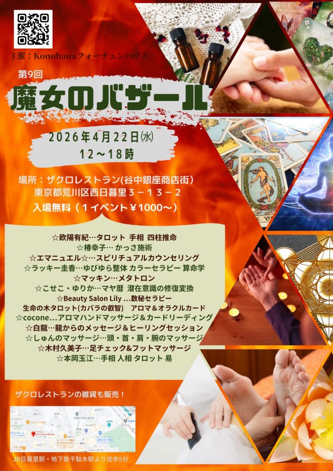 2026年4月22日(水)、異国情緒あふれるザクロレストラン(谷中銀座商店街)にて、「第8回 魔女のバザール」が開催されます。